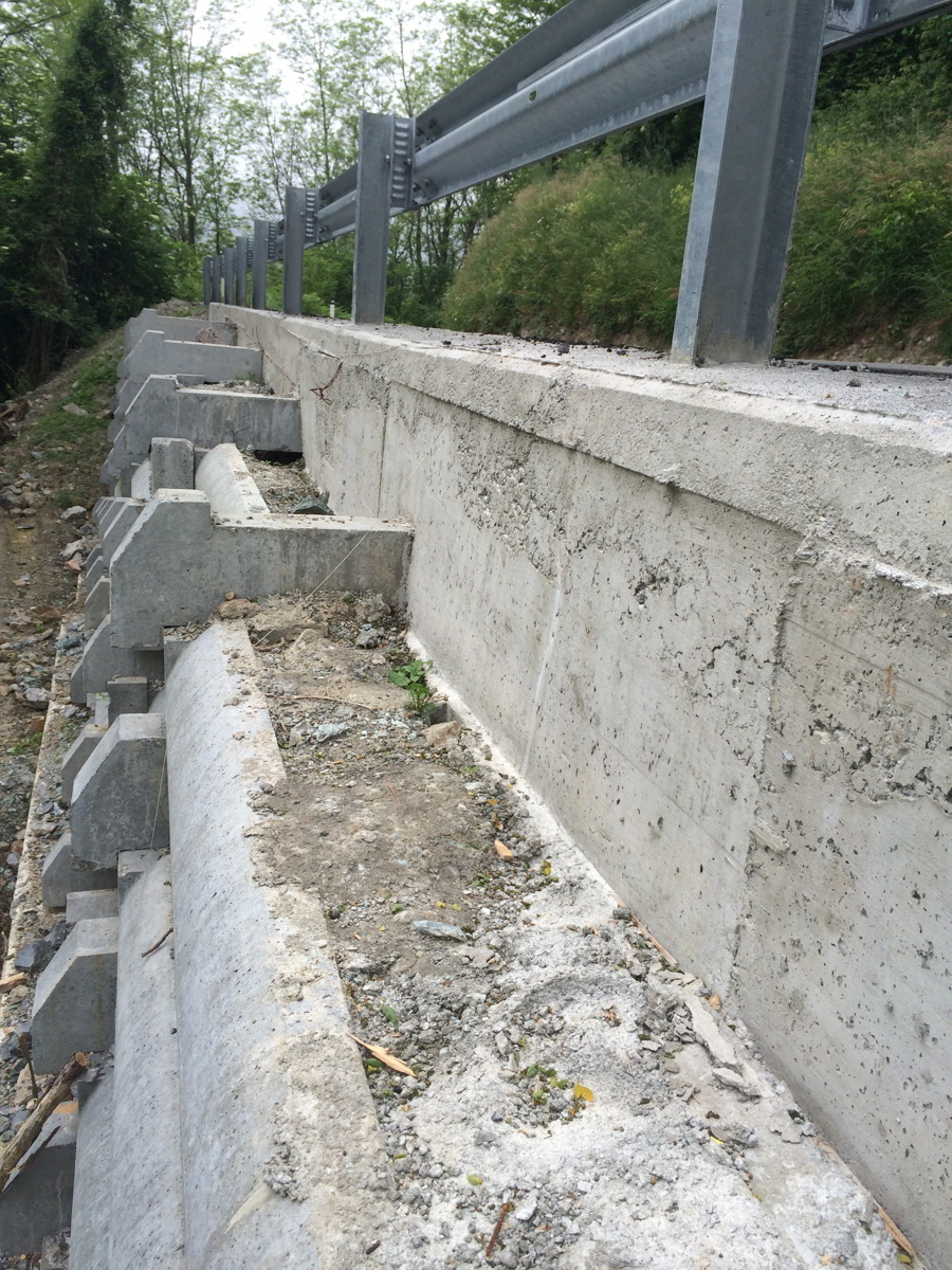 Muro ultimato. Si procede alla realizzazione di cordolo su cui posizionare l'eventuale guard rail.