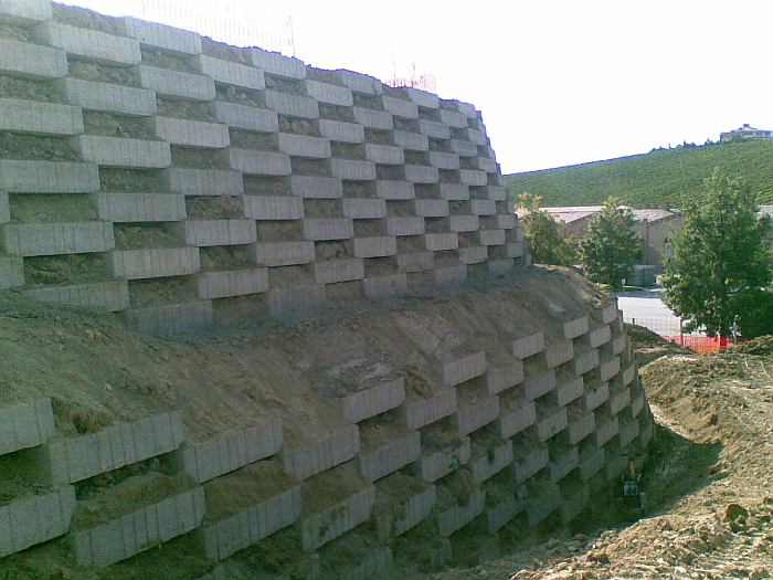 Gli elementi costruttivi della parete NEW sono costituiti da manufatti base in cemento armato a forma di L, da elementi di ancoraggio semicircolari e da fasce chiuse ad anello di collegamento fra i primi e i secondi. La costruzione del muro avviene strato per strato, versando e compattando il materiale di riempimento, quando possibile anche locale. Gli elementi intirantati assorbono le spinte orizzontali provocate dal terreno di riempimento; si forma così un corpo di "terra legata" che contrasta, a gravità, le spinte provenienti dalla scarpata o dal rilevato retrostante. Se utilizzata come da parete di sostegno le spinte interne si distribuiscono tra gli elementi di facciata e gli elementi posteriori di ancoraggio; nel caso di argini, valli paraslavine, antirumore ecc. vengono invece collegati direttamente gli elementi base, disposti specularmene sui due lati. La spinta verticale non viene trasmessa al terreno dagli elementi del muro, attraverso il terreno di riempimento: in genere non sono dunque necessarie fondazioni.