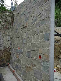 Blocchi monolitici con paramento riportante disegno a basso rilievo in cls NEW JUNIOR da posizionarsi a secco su fondazione. Facilità di realizzazione di angoli da 0° a 90° senza la necessità di elementi speciali. Senza dimensionamento statico assolvono bene la funzione di rivestimento e sostegno.