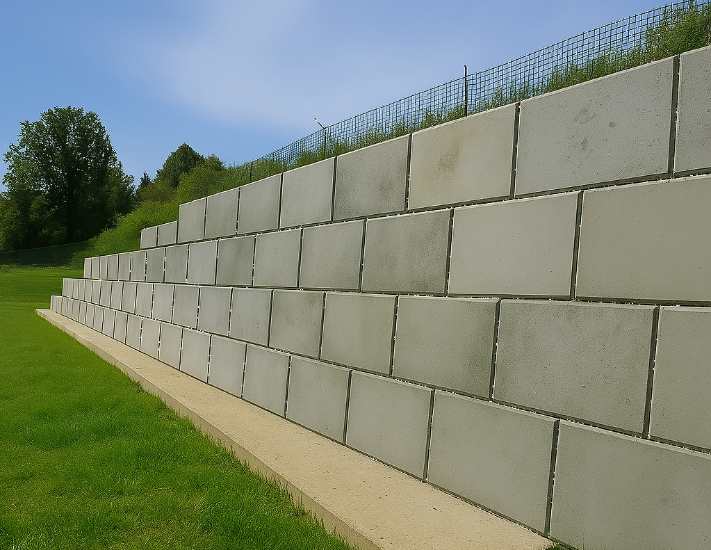 Pannelli a lastre verticali con o senza costolature (rivestite in pietra o finta pietra) o blocchi in cls atti alla creazione di Muri a secco